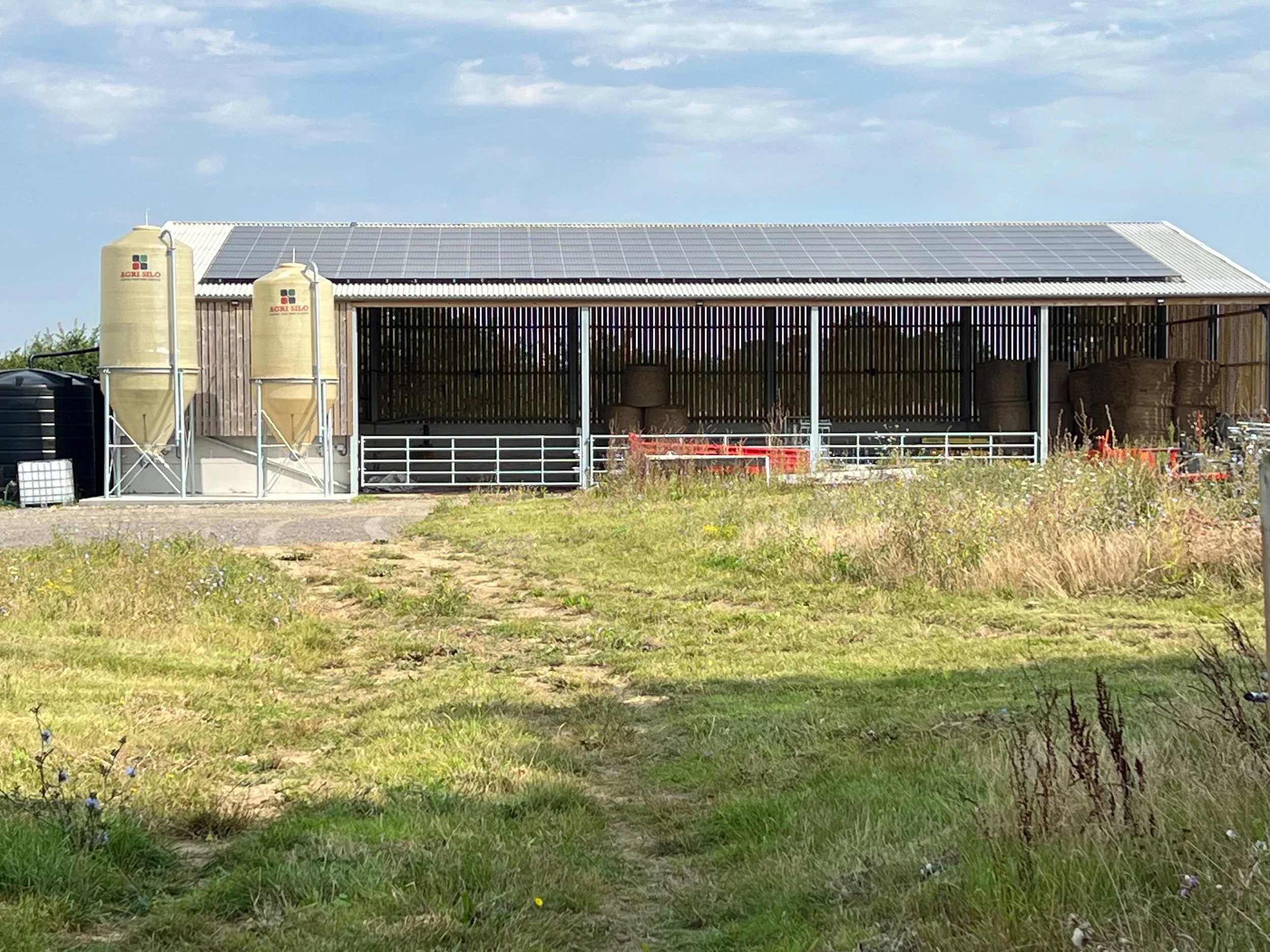 In 2023, we constructed a large barn to act as our winter livestock quarters which we also use for solar power generation and rainwater harvesting.