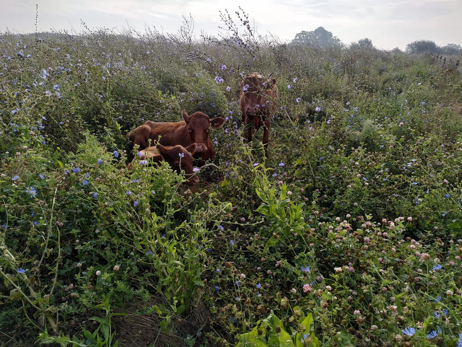 Last week our three long-awaited Dexter cattle arrived at Nonsuch Farm and have made themselves at home in the top field where they are enjoying a rich diet of clover, vetch and chicory as well as grass. They are still quite shy but can be seen occasionally down by the pond near the layby in Butchers Road.We hope to be welcoming four other cows in the coming week as we build a small herd.